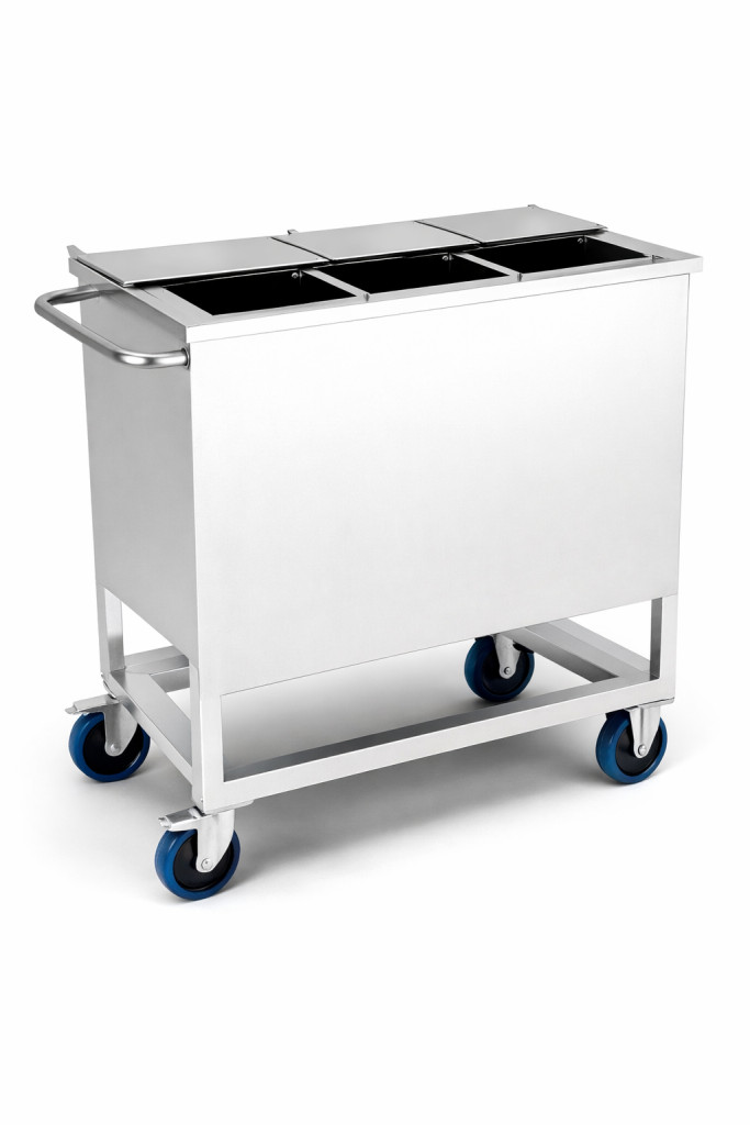 » AISI 304 rozsdamentes acél test» 6 elválasztó evőeszközöknek» 4 görgő, 2 fékkelSz: 54 H: 100 M: 85 cm