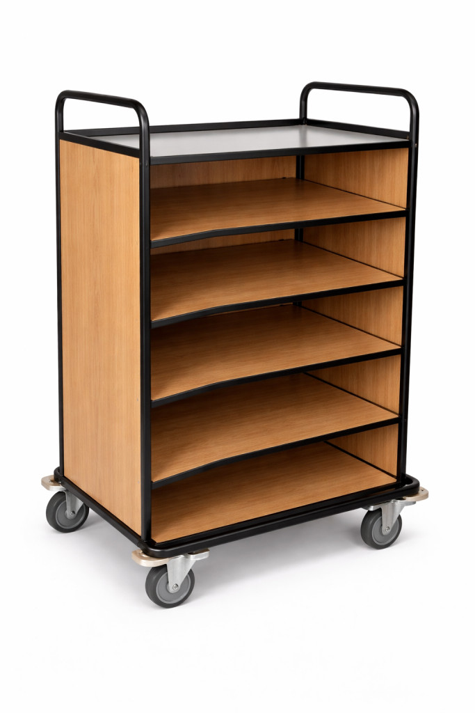 » Mdflam felület» Ütközők» 5 polc (10 db 40x60 cm-es tálcakapacitás)» 4 forgókerék, 2 fékezhetőSz: 68 H: 91 M: 146 cm