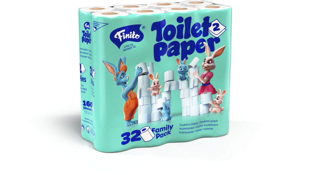 FINITO háztartási toalettpapír 2rtg., 100% cell., 160lap/18m/tek., 32tek./cs. (2cs./#, 36#/raklap)