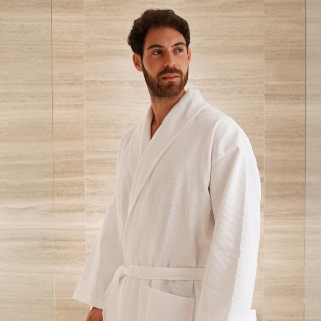 A 100% pamutból készült, bordázott kidolgozású Finesse fürdőköpeny a könnyű luxus megtestesítője, 270 g/m²-es súlyával. Kevesebb mint egy kilogrammot nyom, és úgy tervezték, hogy hűvösen tartson tavasszal és nyáron. Elegáns megjelenését két mély foltzseb és egy hosszú, levehető öv egészíti ki, így stílusos választás a kikapcsolódáshoz. Kizárólag fehér színben és XL méretben kapható, az eleganciát a praktikummal ötvözi. A köntös mosógépben mosható és egyedi hímzési lehetőséget kínál, így elengedhetetlen luxuscikk a melegebb napokra.