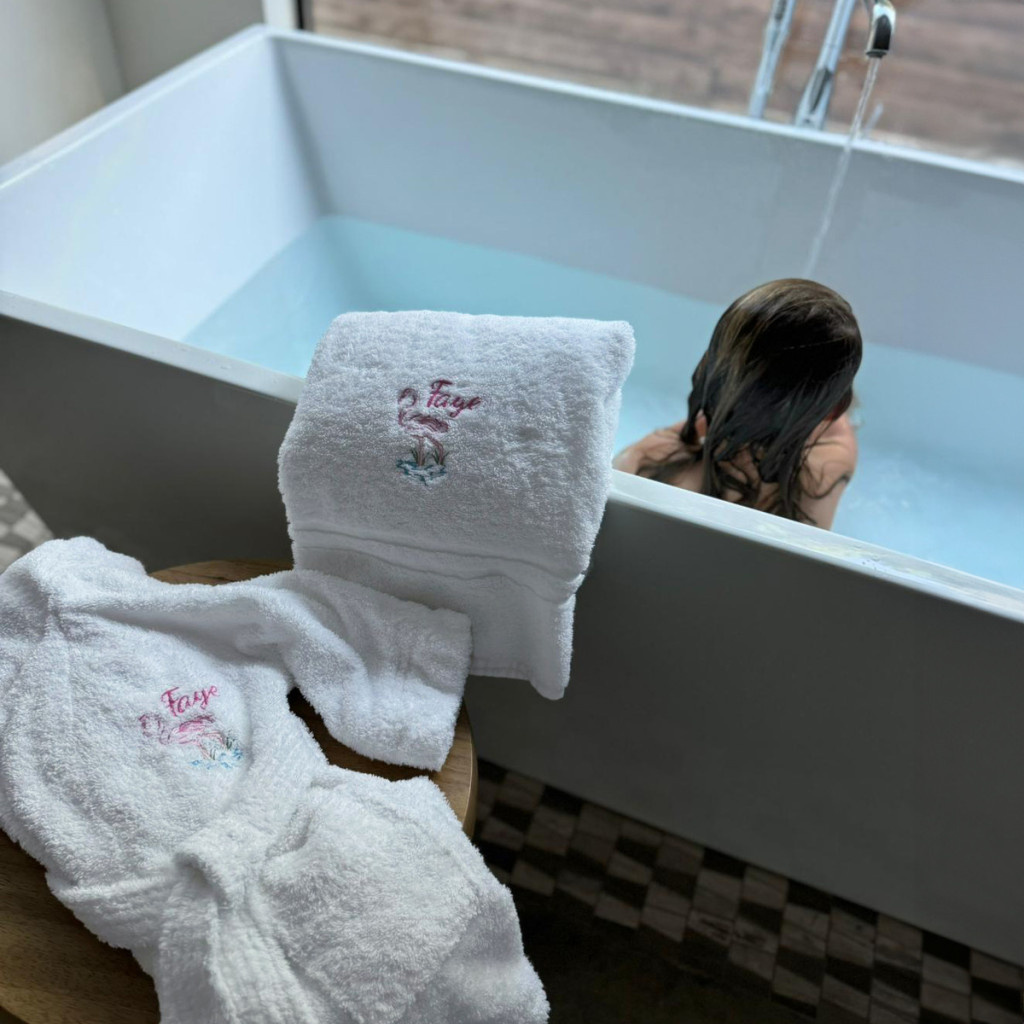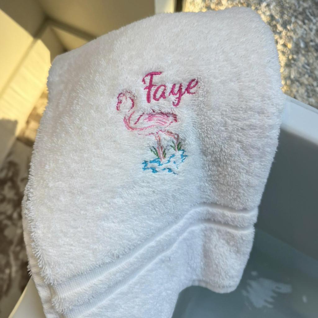 • Kényelmes fehér 100% pamut fürdőlepedő (70 x 130 cm): Puha és tökéletes a szárítkozáshoz, a fejléc fölé hímzett motívummal, hogy igazán egyedi legyen.