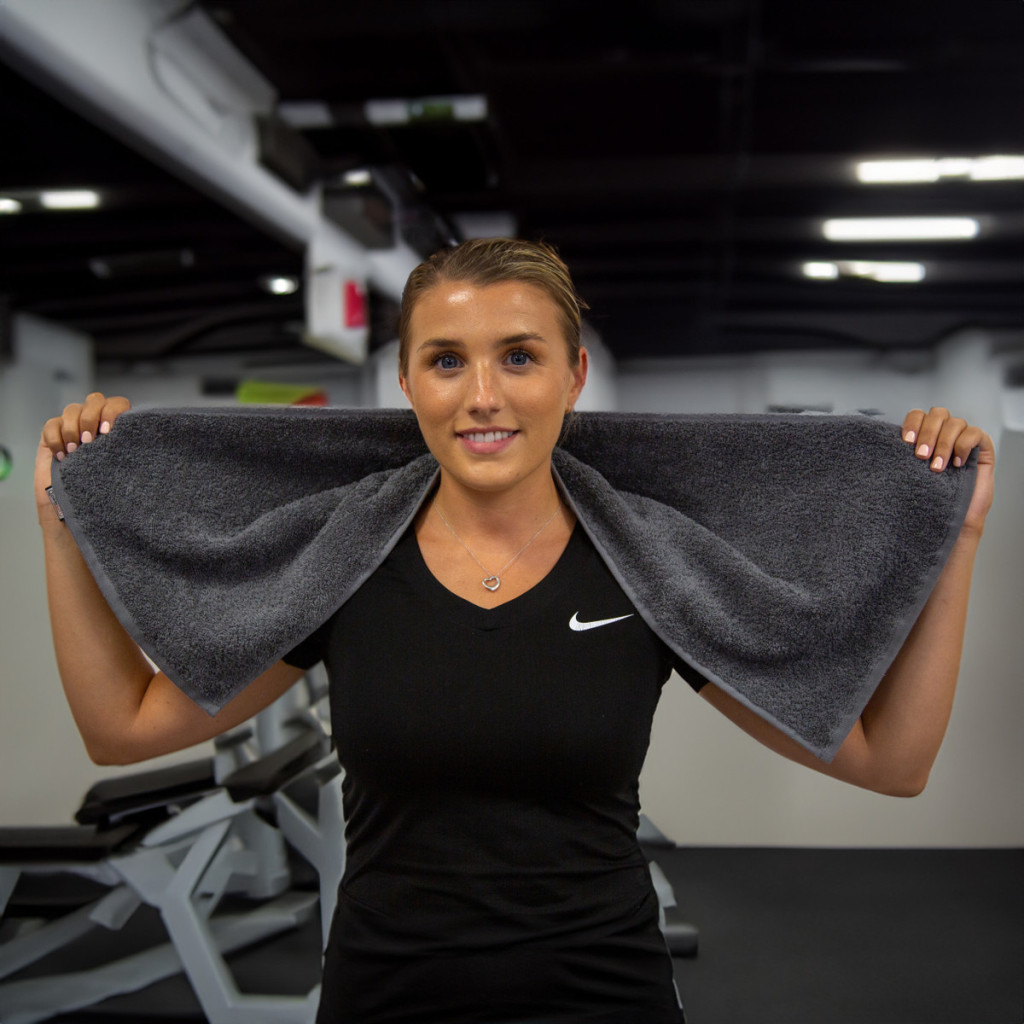 • Tornatörölköző: Hosszú és keskeny formája ideális a kéz és az arc szárítására edzés közben.
