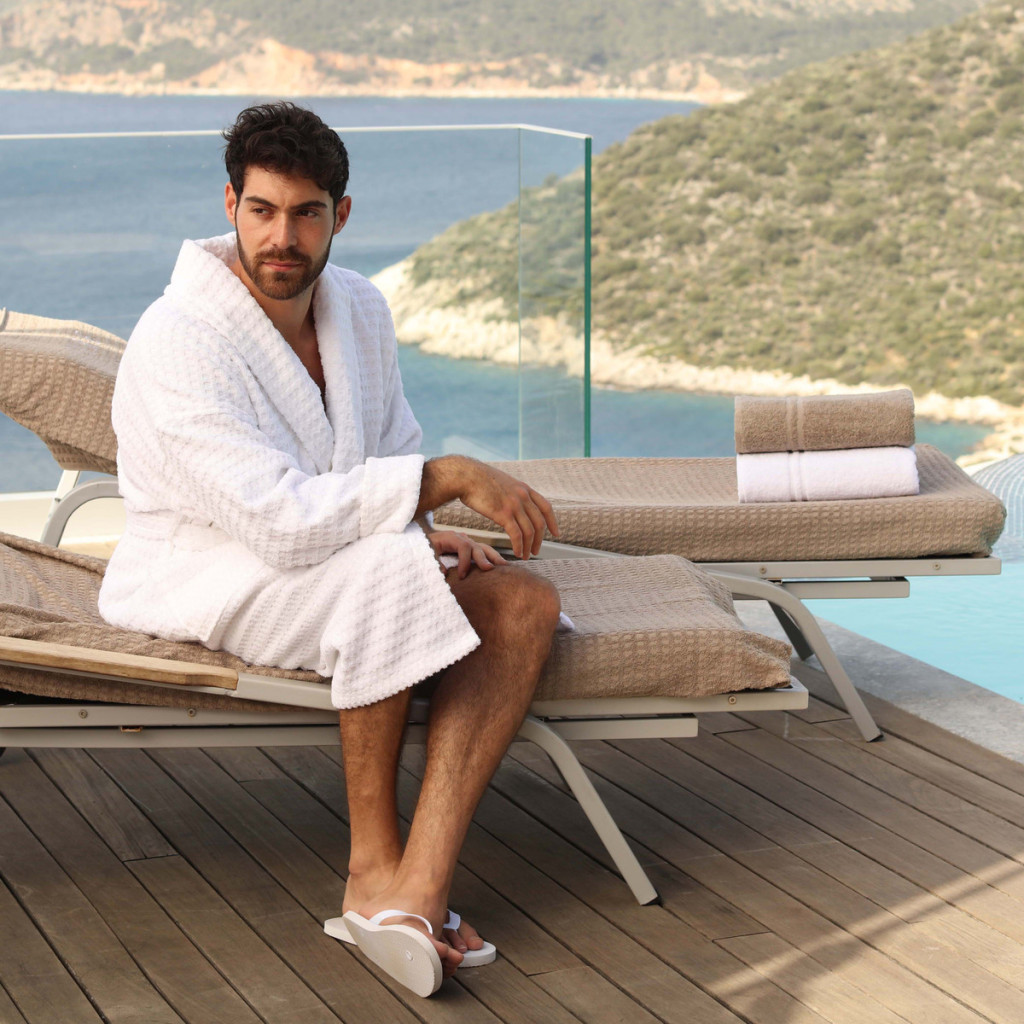 A gofrimintás nyugágyhuzat medence- vagy napozóágyakon való használatra készült. Népszerű palaszürke vagy kavicsos színünkben kapható, szuper puha, gofrimintás törölközőből készült, amely puha és kényelmes, kiváló nedvszívó képességgel.