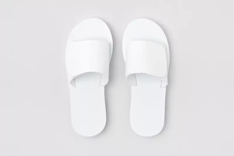 Tapasztalja meg a kényelmet és a rugalmasságot a klasszikus fehér Wellness tépőzáras papucsokkal. A nyitott kialakítás kellemes illeszkedést biztosít, míg a praktikus tépőzár lehetővé teszi az egyéni szélesség beállítását. Könnyű EVA anyagból készült, ezek a papucsok egyszerre kényelmesek és stabilak – tökéletesek mindennapi használatra wellness területeken vagy szabadban. A strukturált EVA talp biztonságos talajfogást biztosít nedves felületeken, így ideálisak szállodákba, gyógyfürdőkbe, medencékbe és strandokra. A környezetbarát papírszalagos csomagolás megfelel a kényelem és a fenntarthatóság magas szabványainak.