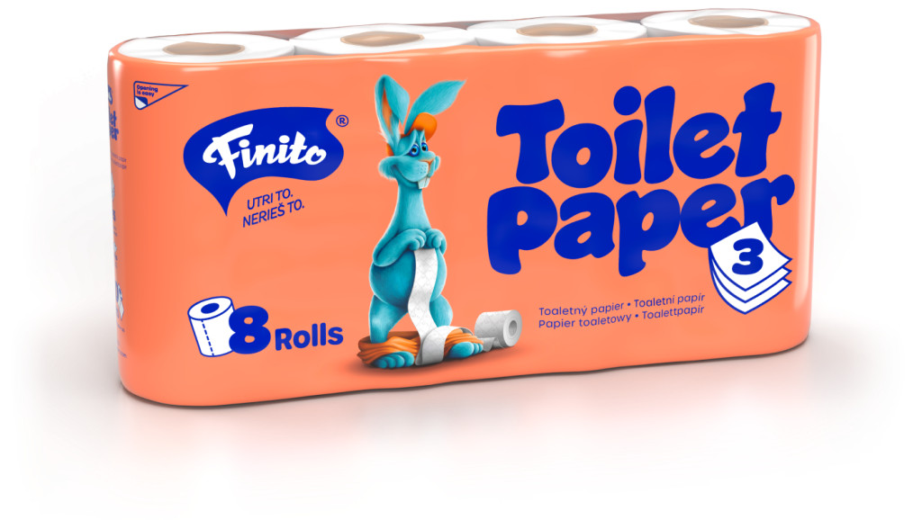 FINITO háztartási toalettpapír 3rtg., 100% cell., 160lap/18m/tek., 8tek./cs. (4cs./#, 72#/raklap)
